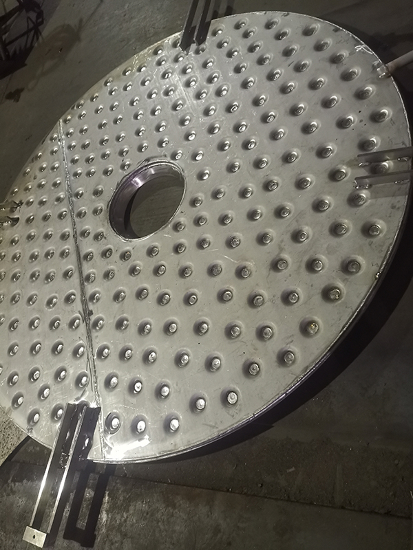 中空的干燥盤內(nèi)通入加熱介質(zhì),加熱介質(zhì)形式有飽和蒸汽、熱水和導(dǎo)熱油,加熱介質(zhì)由干燥盤的一端進(jìn)入,從另一端導(dǎo)出。已干物料從一層干燥盤落到殼體的底層,被耙葉移送到出料口排出。水份從物料中逸出,由設(shè)在頂蓋上的排濕口排出,真空型盤式干燥器的濕氣由設(shè)在頂蓋上的真空泵口排出。從底層排出的干物料可直接包裝。
